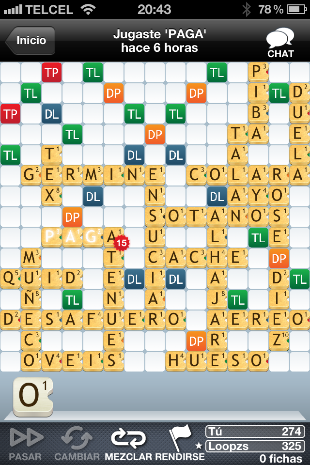 La apilcación también tiene chat, para poder platicar con quien uno juega, y así quejarse ocasionalmente de que no le tocaron vocales o de que el otro se aperró la casilla de triples puntos.